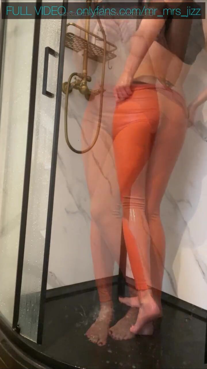 Mrs Jizz rinses cum off her yoga pants ass
