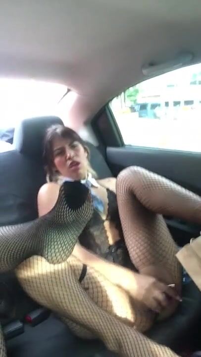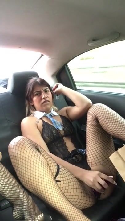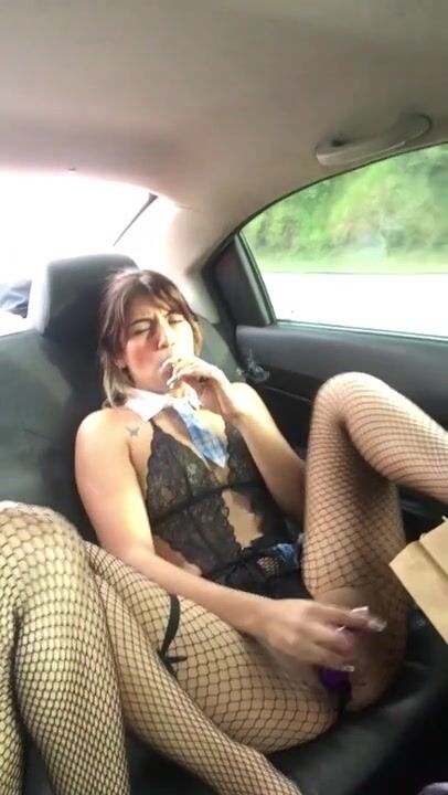 My stepbrother's girlfriend smokes and masturbates in the back of my car, very hot