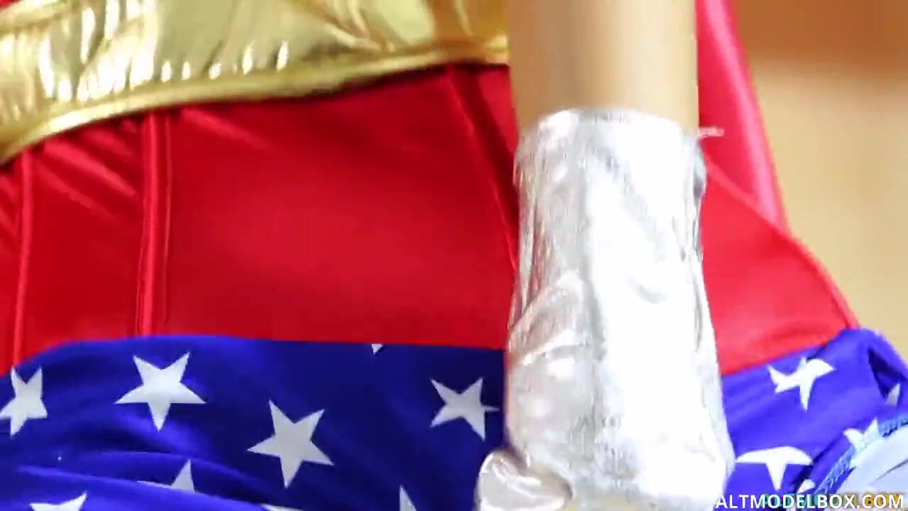 HORNY WONDER WOMAN MASTURBATES IN A BAR